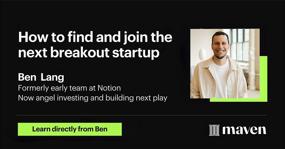 I’m hosting a livestream on finding and joining your next breakout startup through Maven, welcome to sign up here. looking forward to it!